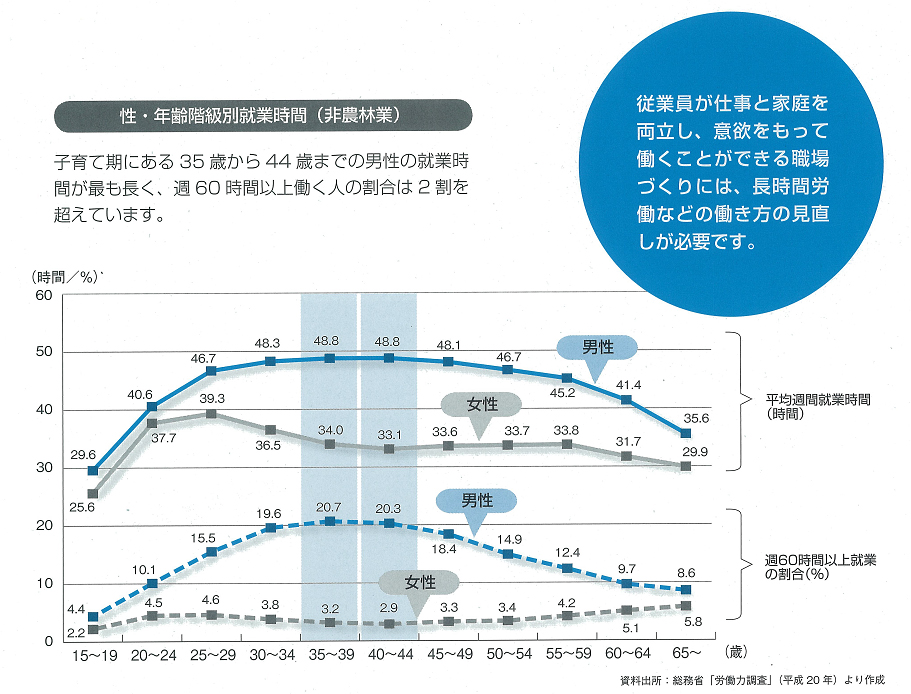 もっと言うならば子育て世代の男性を中心に長時間労働という統計が出されてます。
